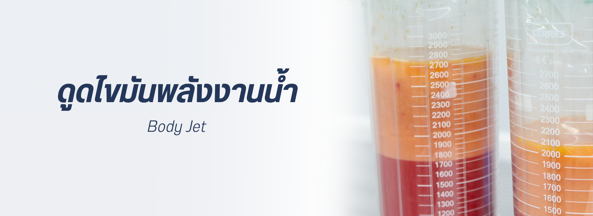 Body Jet คือ เทคโนโลยี Water - Jet Assisted Liposuction & Lipotransfer เป็นลิขสิทธิ์ เฉพาะจากเยอรมัน มีการพ่นน้ำและดูดกลับ รวมอยู่ในหนึ่งเดียวอาศัยการทำงานของแรงดันน้ำที่ออกมาเป็นละอองขนาดเล็ก ทำหน้าที่แยกเซลล์ไขมันออกจากเนื้อเยื่อรอบข้างได้รวดเร็ว อ่อนโยน และปลอดภัยสูง จากประเทศเยอรมนีบวมช้ำน้อย ลดระยะเวลาการพักฟื้นของคนไข้ และได้เซลล์ไขมันคุณภาพสมบูรณ์ สามารถเติมกลับเข้าร่างกาย (Fat Transfer) ได้อย่างมีประสิทธิภาพ