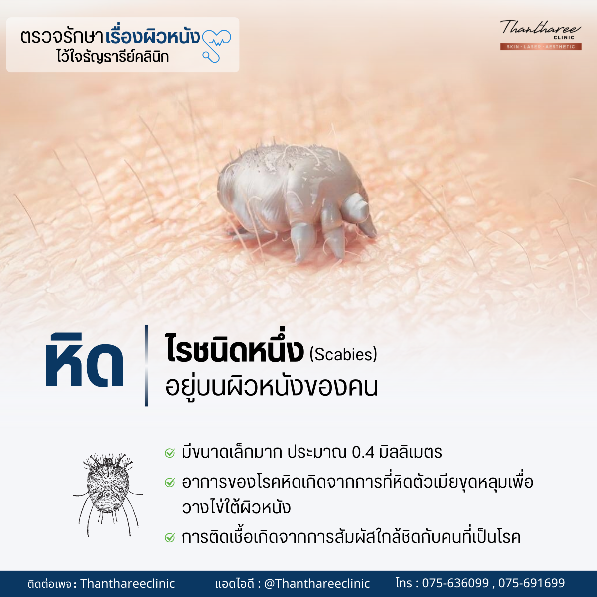 เป็นผื่นแดงมีสะเก็ดเป็นมัน ขอบเขตชัดเจน ผื่นชนิดนี้มักอยู่บริเวณร่องข้างจมูก หว่างคิ้ว หน้าหู หลังหู หนังศีรษะ มีโอกาสเกิดได้มากขึ้นเมื่อได้รับแสงแดดจัด หรือโดนความร้อนมาก ๆ - โรคหิด (Scabies) เป็นโรคติดต่อทางผิวหนังที่เกิดจากตัวหิดหรือไรที่มีชื่อว่า Sarcoptes scabiei var hominis เป็นปรสิตขนาดเล็กประมาณ 0.4 มิลลิเมตรที่ไม่สามารถมองเห็นได้ด้วยตาเปล่า ทำให้เกิดอาการคันอย่างรุนแรงโดยเฉพาะในเวลากลางคืน และเกิดผื่นแดงหรือตุ่มน้ำใสขึ้นตามร่างกาย เช่น ง่ามมือ ง่ามเท้า ข้อพับแขน รักแร้ เต้านม และอวัยวะเพศ