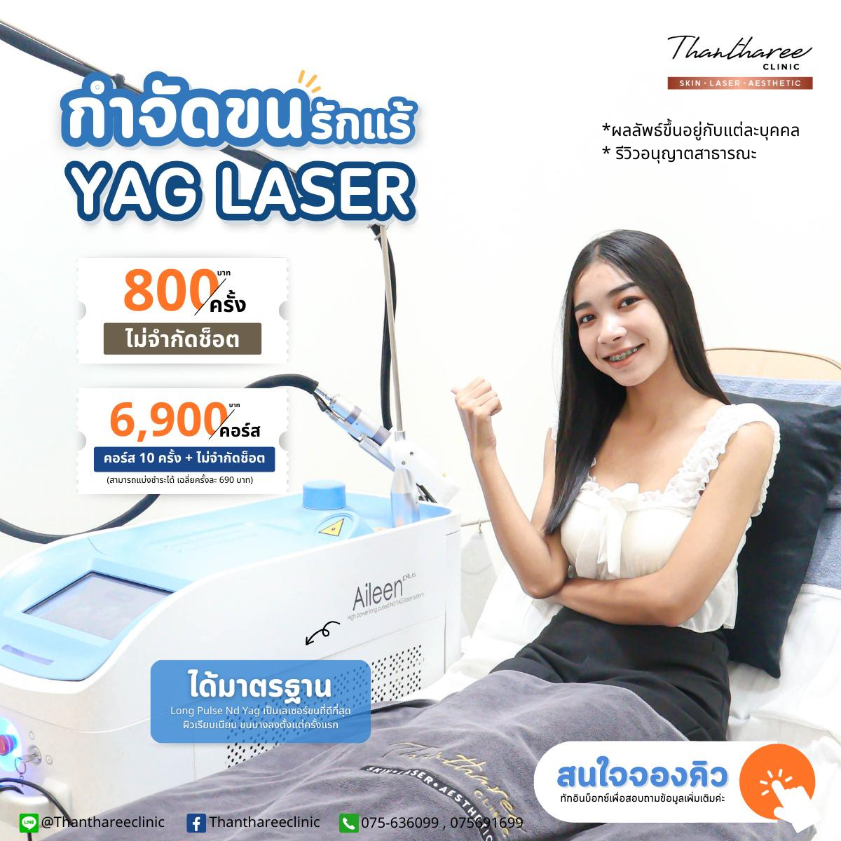 Thantharee Clinic We use the LONG PULSED ND YAG laser hair removal machine, which is a laser machine that is recognized as the best hair removal technology (GOLD STANDARD).